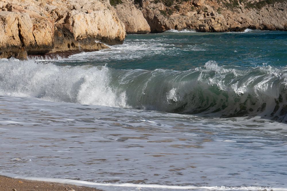 Eau de mer, vagues et plage sur la côte méditerranéenne. Au pied de la montagne Cumbre des Sol se trouve une crique de rêve, entourée d'un imposant décor rocheux. Il ne fait aucun doute que Cala Moraig fait partie de mes criques préférées du nord de la Costa Blanca, car dans ce lieu de rêve, l'eau de mer rencontre la roche qui a été façonnée par la force de l'eau pendant des milliers d'années. En regardant les rochers et les vagues, je pense au temps et au changement dans la nature. Selon moi, l'eau qui coule représente la beauté naturelle, caractérisée par un mouvement et une transformation permanents.