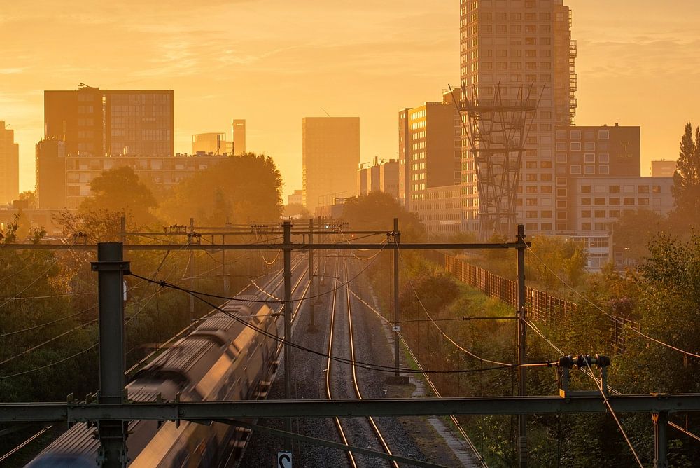 Lever de soleil à la gare de Tilburg, quel bonheur de se réveiller ainsi. C'est toujours agréable de voir ce que l'on a en tête devenir réalité. Il y avait un peu de brouillard et le soleil commençait tout juste à apparaître.