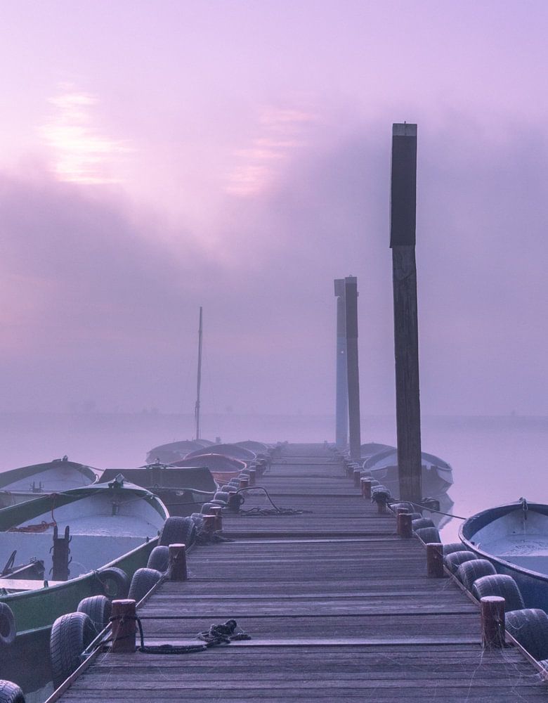 Achetez cette œuvre d'art de paysage Lever de soleil brumeux au bord de l'eau. par Rick van de Kraats sur toile, aluminium, ArtFrame ou photographie (encadrée), impression d'art en haute qualité et tout format.