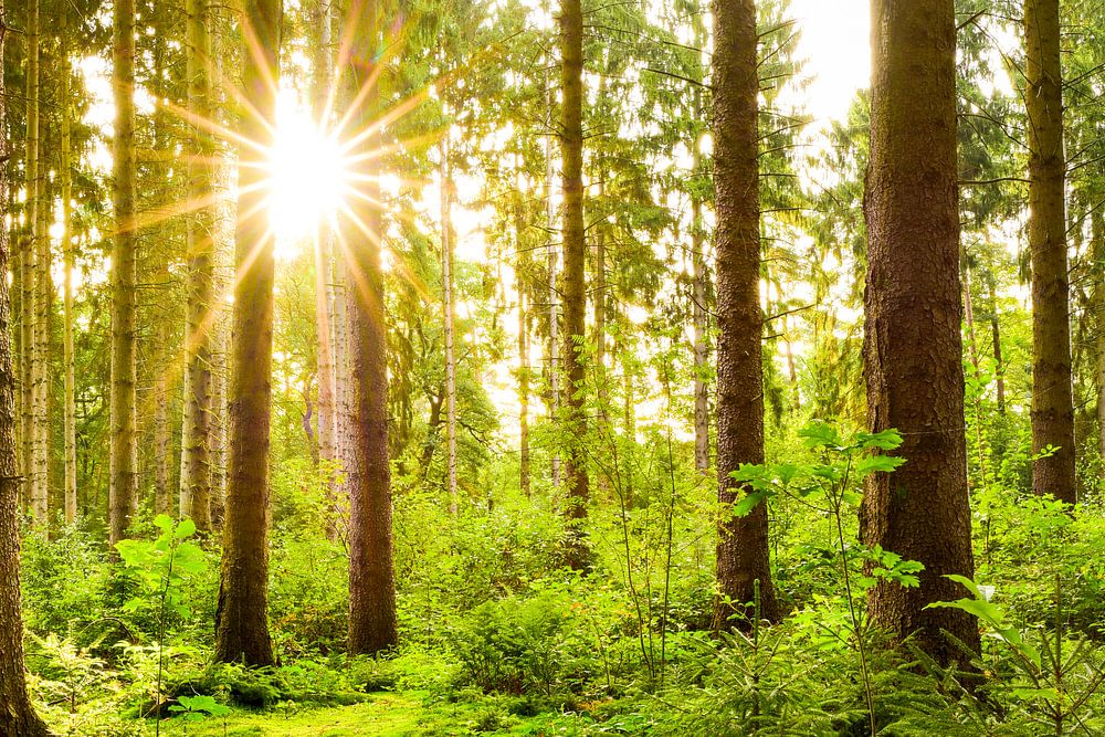 Achetez cette œuvre d'art de paysage Lever de soleil dans la forêt par Günter Albers sur toile, aluminium, ArtFrame ou photographie (encadrée), impression d'art en haute qualité et tout format.