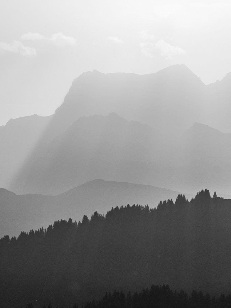 A propos de "Lever de soleil dans les montagnes - Noir et blanc"