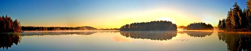 Lever de soleil doré sur le Virserumsjön dans le Smaland d'une province du sud de la Suède