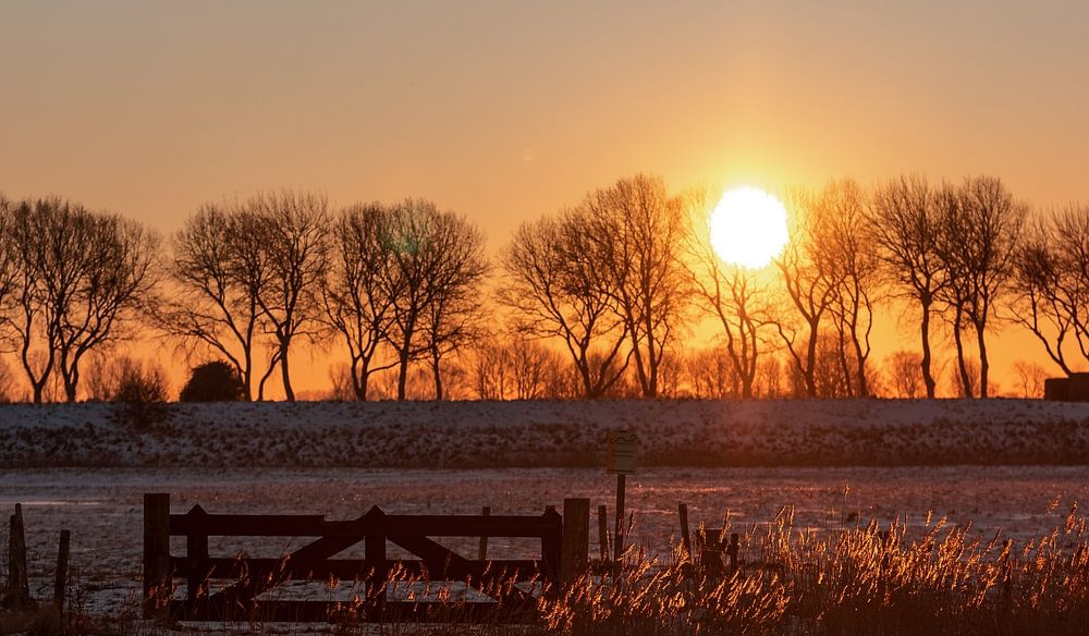 Lever de soleil le long du canal d'hiver à travers Walcheren