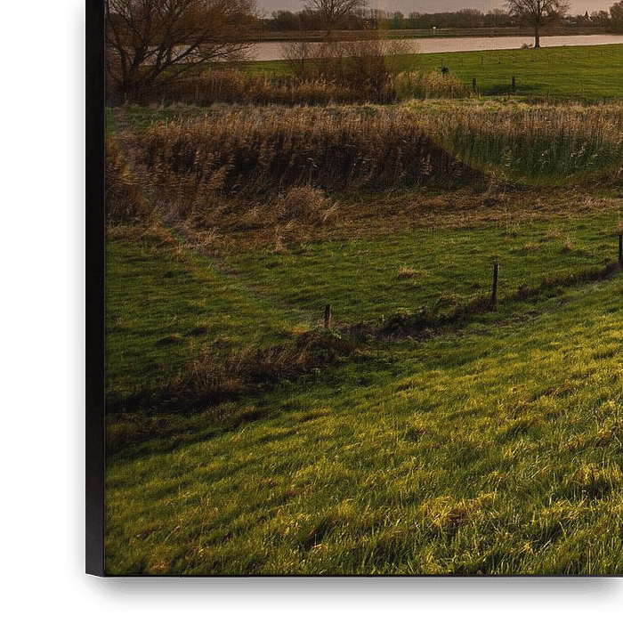 Achetez cette œuvre d'art de paysage Lever de soleil sur la Meuse près de Den Bosch, Pays-Bas par Marcel Bakker sur toile, aluminium, ArtFrame ou photographie (encadrée), impression d'art en haute qualité et tout format.
