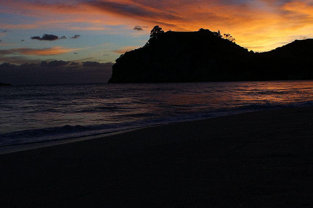Réveillez-vous avec un magnifique lever de soleil sur la plage de Hahei, Coromandel, Nouvelle-Zélande. Une belle plage, avec d'excellentes formations rocheuses, à proximité de la célèbre Cathedral Cove.