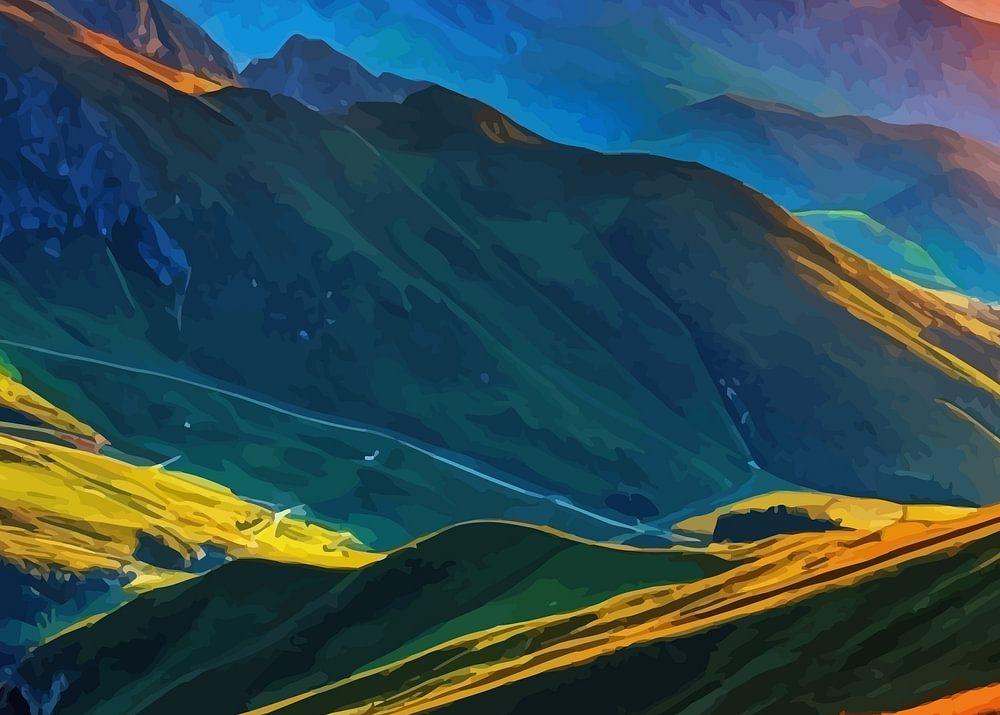 L'image capture un magnifique lever de soleil sur la formation rocheuse des Cinque Torri dans les Dolomites, près du col de Falzarego à Belluno, en Italie. Les imposantes flèches rocheuses sont illuminées par les teintes dorées du soleil levant, projetant de longues ombres sur les collines verdoyantes en contrebas. Le ciel est peint dans des tons vibrants d'orange, de rose et de bleu, créant un contraste spectaculaire avec le paysage montagneux accidenté.