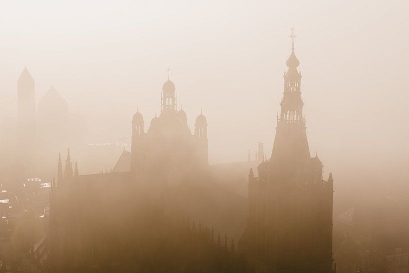 Lever du soleil près de l'église Saint-Jean à Bois-le-Duc.