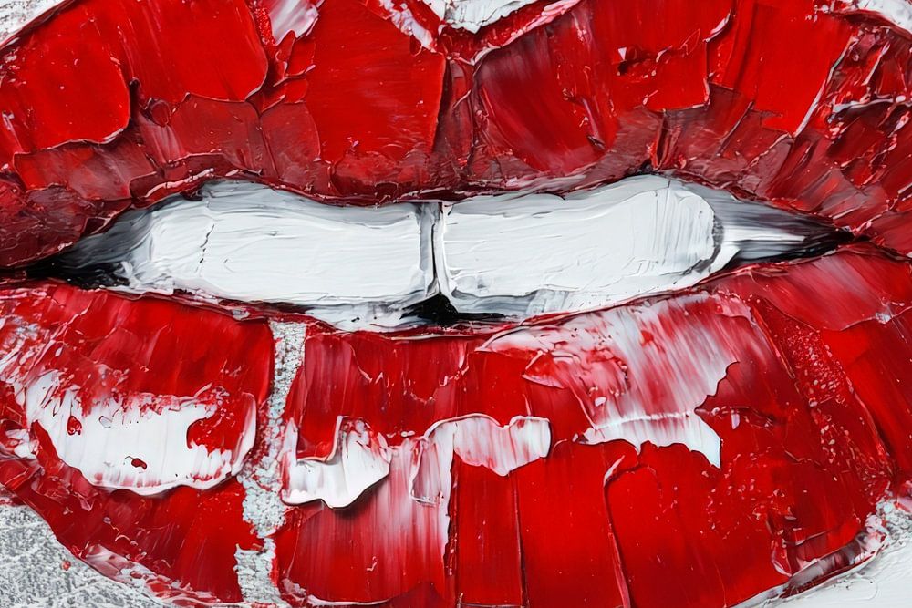 Une touche séduisante de passion dans un rouge éclatant, les lèvres semblent presque vivantes et ajoutent une touche artistique à n'importe quelle pièce. Les textures impressionnantes et le contraste dramatique avec le fond sobre rendent cette œuvre d'art idéale pour un salon moderne ou une cuisine créative. Un véritable accroche-regard !