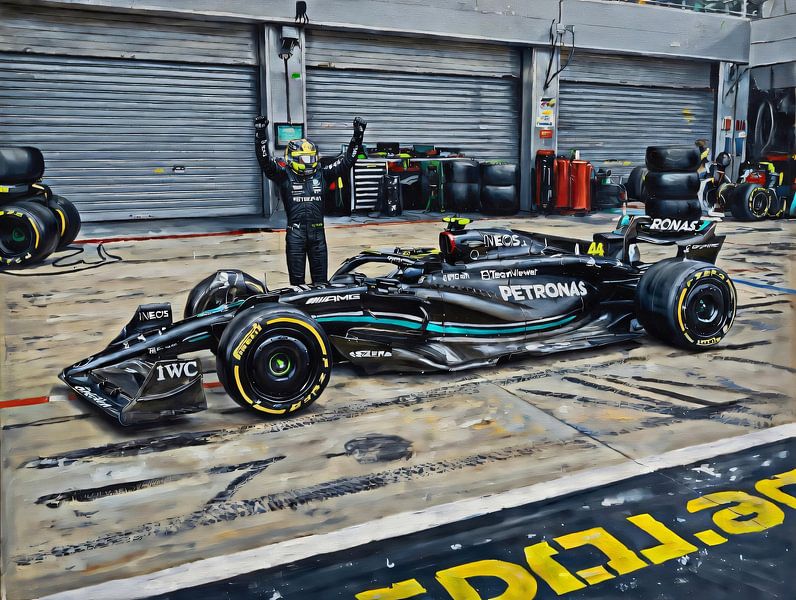 Acheter ce art numérique Lewis Hamilton et sa Mercedes AMG F1 par DeVerviersBelgium sur toile, aluminium, ArtFrame ou photographie (encadrée), impression d'art en haute définition et tout type de format.