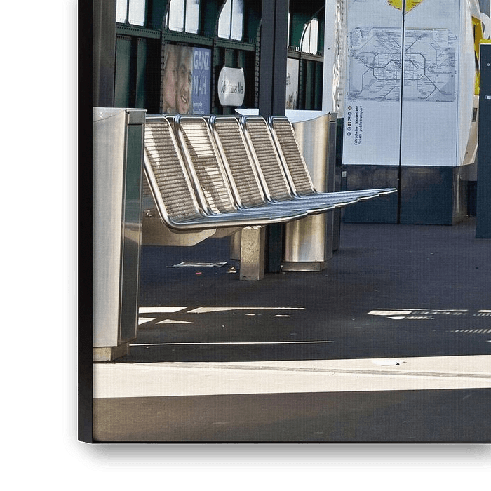 La réalisation graphique claire le long des voies de train jusqu'à la vue arrière des quais confère au motif de l'image un caractère visuel dynamique et captivant et s'associe parfaitement aux espaces d'habitation et de travail grâce à son ordre graphique et à son harmonie.