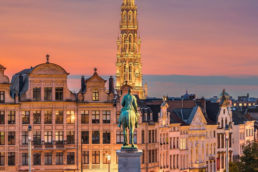 Skyline de la vieille ville de Bruxelles, Belgique, au coucher du soleil