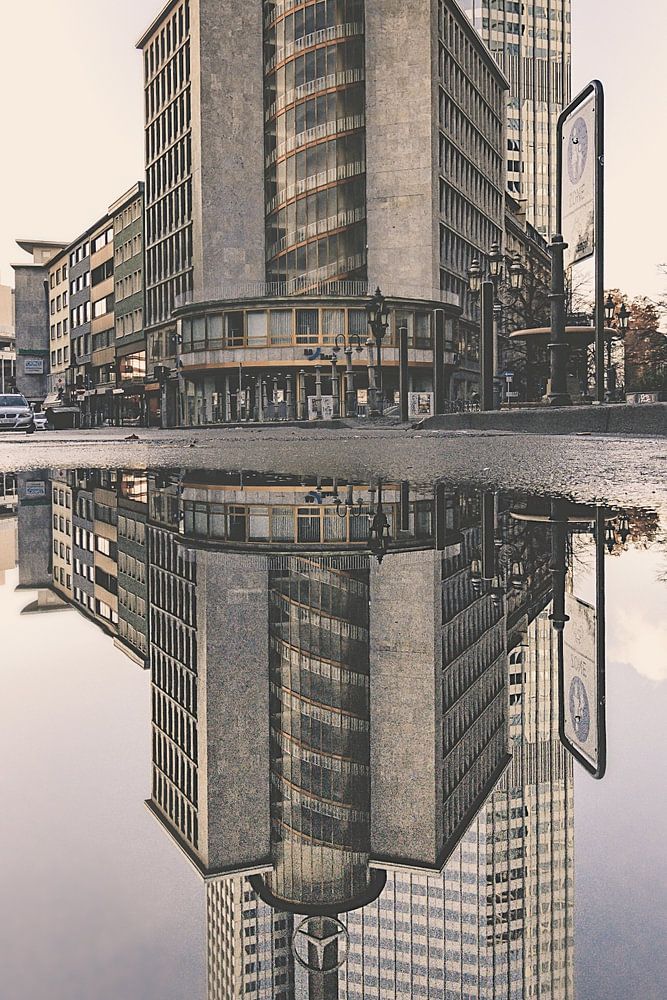 A propos de "Ligne d'horizon de Francfort, reflet dans une flaque d'eau"
