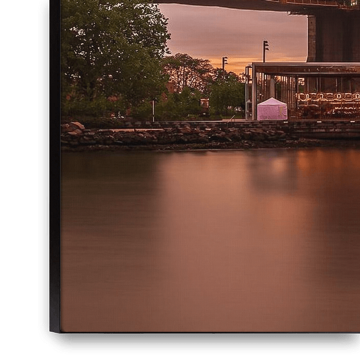 J'ai pris cette photo de la ligne d'horizon de la ville de New York et du pont de Brooklyn pendant le coucher du soleil, un soir de mai 2016.
