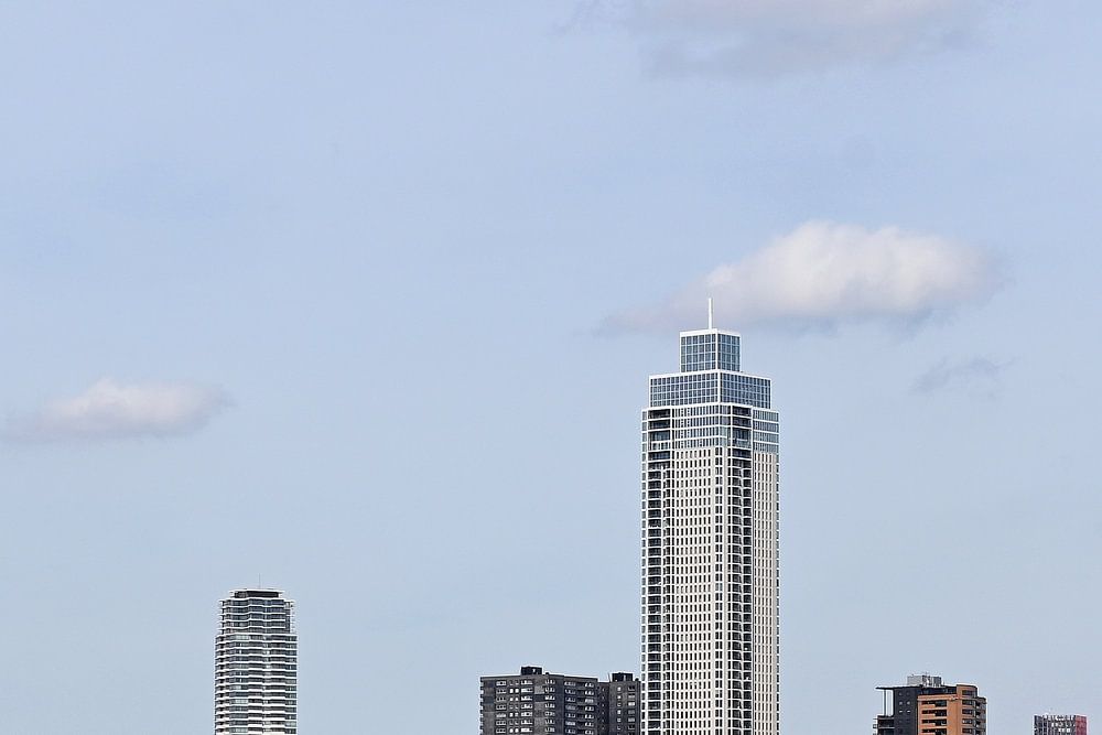 La ligne d'horizon de Rotterdam avec la Salmon Harbour Tower, le WTC, le pont Erasmus et de nombreux autres bâtiments. L'architecture moderne dans la ville portuaire mondiale.