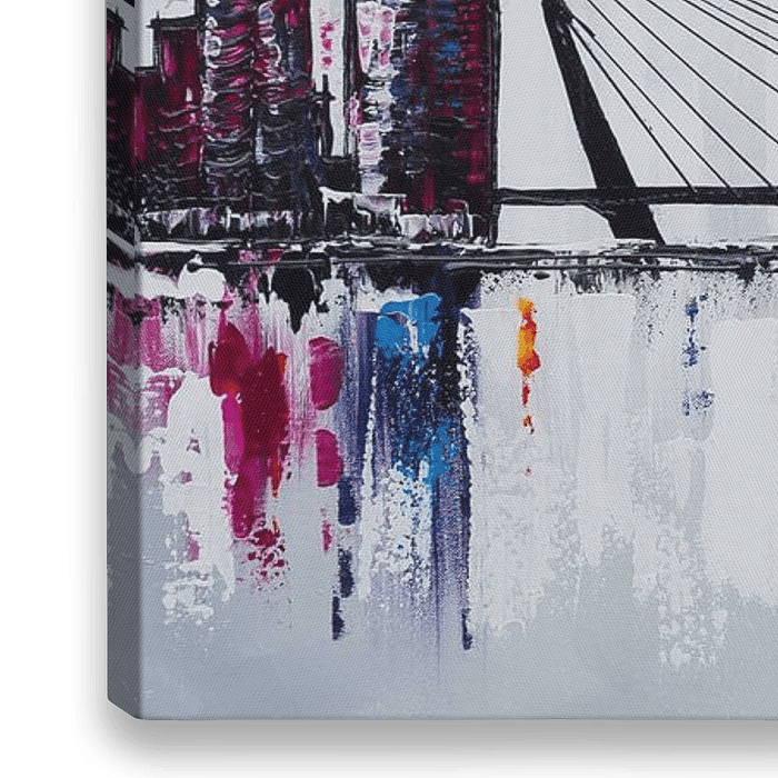 La ligne d'horizon de Rotterdam, avec le célèbre pont Erasmus et l'Euromast. Si votre intérieur a besoin d'un peu de couleur, cette peinture est un excellent choix !