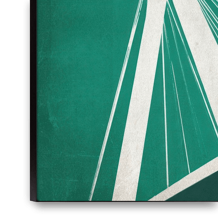 Dans cette œuvre, le jeu des lignes du pont Erasmus occupe une place centrale. Les câbles créent un éventail de diagonales qui s'étendent sur toute la surface de l'image. La combinaison du blanc et du vert confère à l'ensemble un aspect frais et contemporain, avec une subtile touche vintage.