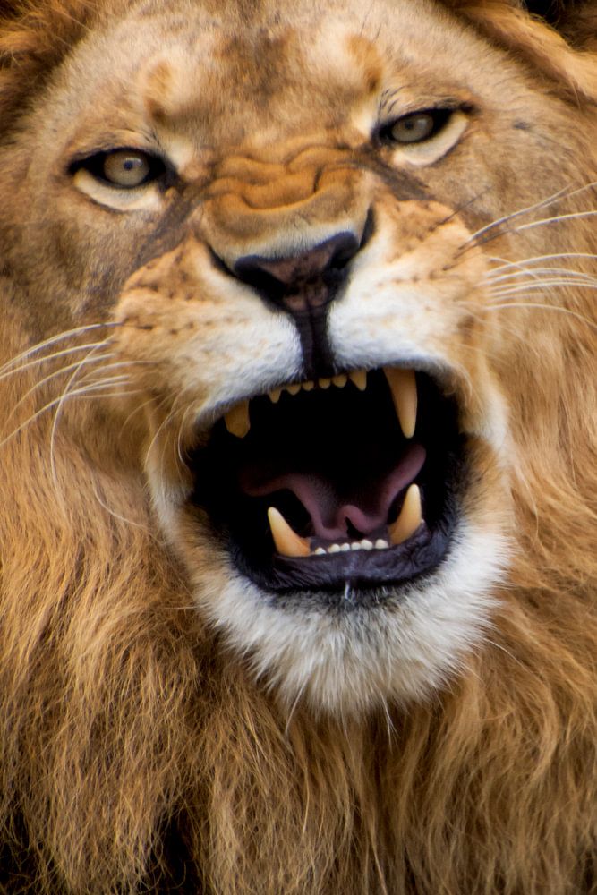 Une photo d'un lion africain qui semble rugir. En réalité, c'est la fin d'un très grand bâillement ! Le look rend cette photo très puissante et impressionnante.
