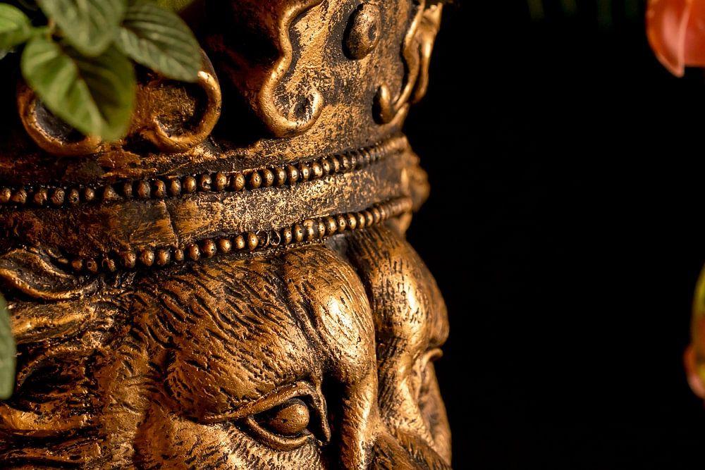 Lion doré avec des fleurs