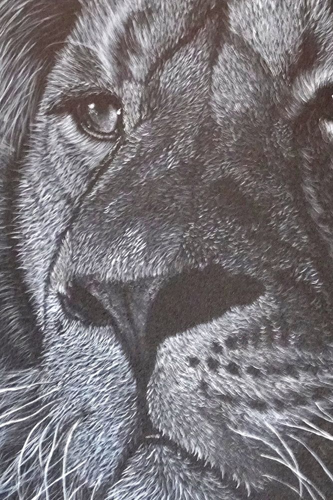 Ce lion est peint sur toile avec de la peinture acrylique. Il s'agit de ma première peinture en noir et blanc et j'ai pris beaucoup de plaisir à la réaliser.