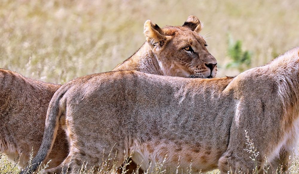 Achetez cette œuvre d'art de lions Lionnes, parc national d'Etosha en Namibie par WiWo sur toile, aluminium, ArtFrame ou photographie (encadrée), impression d'art en haute qualité et tout format.