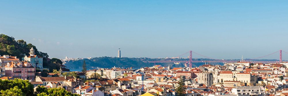 Lisbonne avec le Castelo de Sao Jorge, la vieille ville et le pont Ponte 25 de Abril, Portugal.