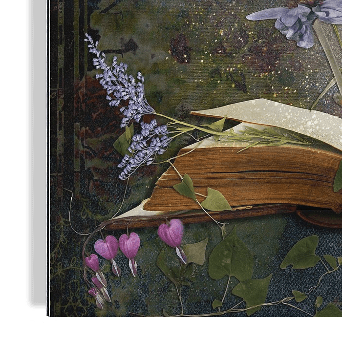 Un collage numérique inspiré par la citation : "Entre les pages d'un livre, il y a un endroit charmant où se trouver". La lecture de livres plante des graines dans votre âme, à partir desquelles de belles choses peuvent ensuite pousser.