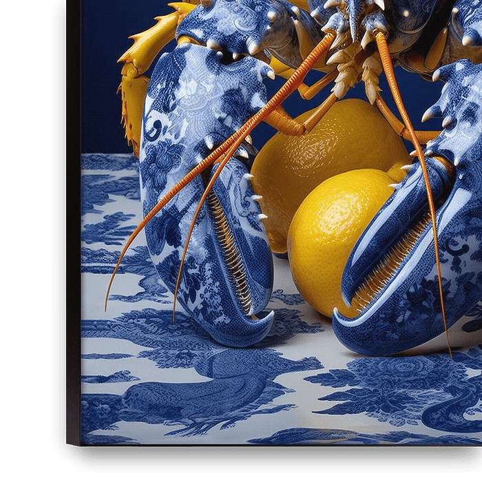 Achetez cette œuvre d'art Popart Lobster Luxe : Homard bleu de Delft avec des citrons par Marianne Ottemann - OTTI sur toile, aluminium, ArtFrame ou photographie (encadrée), impression d'art en haute qualité et tout format.
