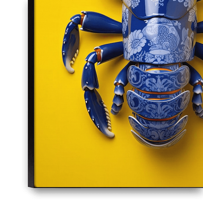 Acheter ce art numérique Lobster Luxe - homard bleu sur jaune par Marianne Ottemann - OTTI sur toile, aluminium, ArtFrame ou photographie (encadrée), impression d'art en haute définition et tout type de format.