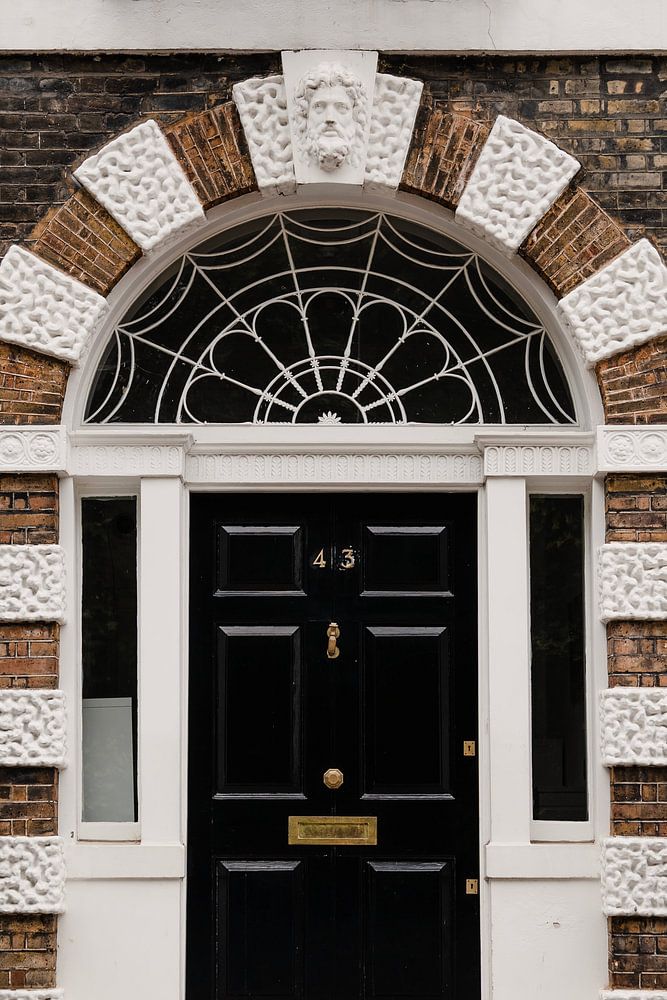 La ville de Londres possède une belle architecture victorienne. Dans le centre ville, j'ai photographié cette porte victorienne d'une maison résidentielle. La porte sombre combinée aux briques mélangées donne une image cohérente.