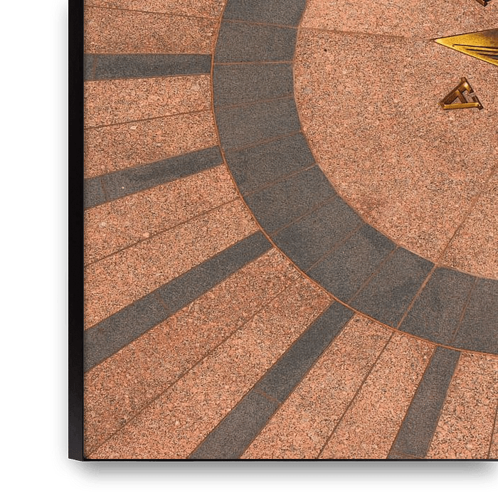 L'image montre un motif circulaire sur le sol, avec une grande étoile dorée au centre et les lettres "T", "E", "X", "A" et "S" autour d'elle, qui forment ensemble le mot "TEXAS". L'étoile et les lettres sont placées à l'intérieur d'un motif circulaire qui rayonne vers l'extérieur avec une alternance de segments clairs et foncés, créant un effet de soleil. Ce motif se trouve dans le Capitole de l'État du Texas à Austin, Texas, États-Unis, et est connu sous le nom de Lone Star, symbolisant le surnom du Texas en tant que "Lone Star State" (État de l'étoile solitaire). L'image est intéressante et pertinente car elle représente un symbole important de l'identité et de la fierté du Texas.