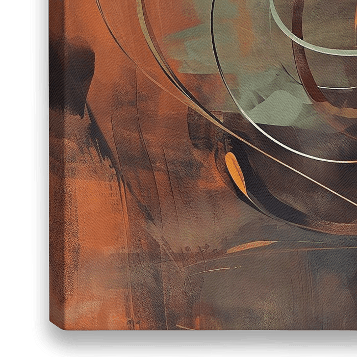Fleur de lotus abstraite dans des tons chauds de terre avec principalement de l'orange, du brun rouille et du vert olive.