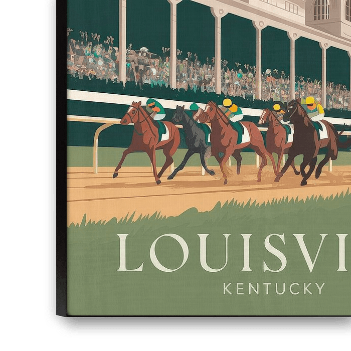 Un spectacle vivant qui capture la dynamique d'une course de chevaux ! Avec ses bâtiments historiques élégants et l'excitation des spectateurs en arrière-plan, il dégage une énergie contagieuse. Parfait pour le salon, où il stimule les conversations et crée une atmosphère d'aventure et de tradition. Un accroche-regard qui raconte des histoires !