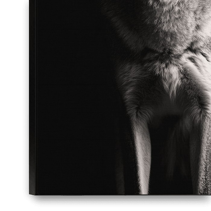 Un loup majestueux au regard perçant déploie sa présence sur un fond sombre. Les détails fins de son pelage et ses oreilles marquées confèrent à cette image une profondeur excitante. Parfaitement adapté à un salon, il transmet des émotions fortes et une élégance naturelle. Une véritable déclaration qui incite à la réflexion.