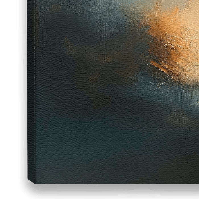 Cette œuvre d'art abstraite capture une atmosphère rêveuse et texturée, où les tons chauds et froids se mélangent harmonieusement. De douces nuances d'or, d'orange et de rose dominent la zone centrale, évoquant la beauté sereine d'un coucher de soleil ou d'une lumière éclatante. Ces tons chauds s'estompent lentement pour laisser place à…