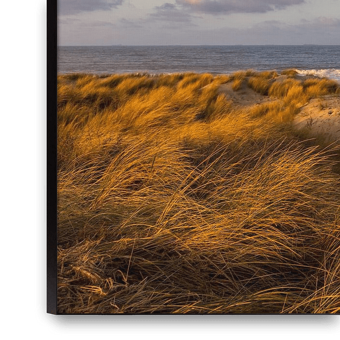 La belle lumière sur les dunes donne une belle couleur à l'herbe de marramoine