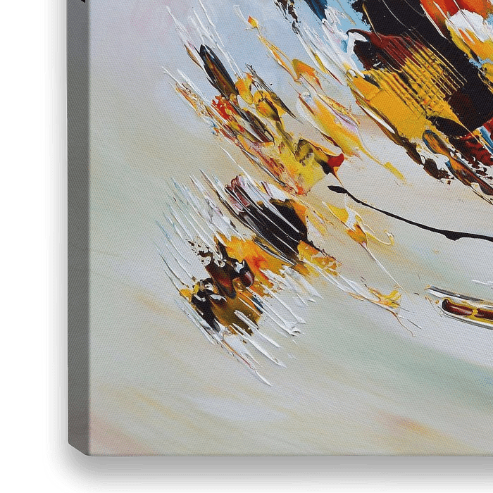 L'art sur toile se marie bien avec n'importe quel mur. Il s'épanouit particulièrement avec les peintures aux coups de pinceau nets.