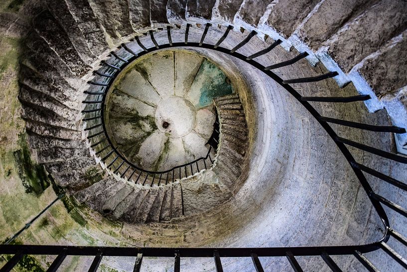 Escalier en colimaçon dans l'ancien phare de l'île de Lundy, au sud de l'Angleterre.