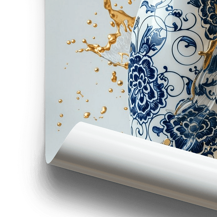 Achetez cette œuvre d'art moderne MOËT Champagne en Delft Blue - Golden Sparkle par Marianne Ottemann - OTTI sur toile, aluminium, ArtFrame ou photographie (encadrée), impression d'art en haute qualité et tout format.