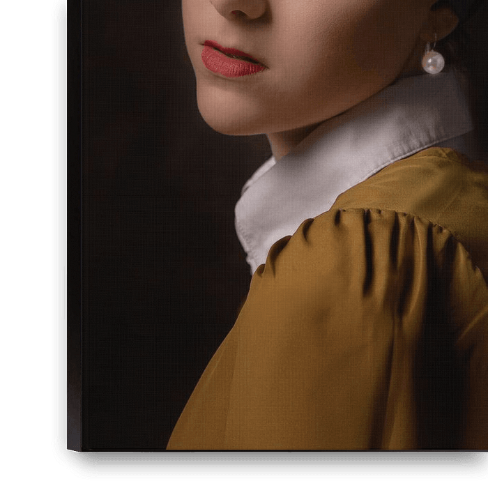 Je voulais photographier ma fille comme la fille de Vermeer. L'écharpe en soie vient de mon père (78 ans) quand il était adolescent. Imprimé sur papier reliquaire dans un cadre ancien, celui-ci est magnifique.