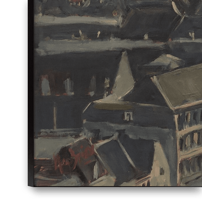 Maastricht dans des atmosphères lunaires sinistres. Huile sur mdf. Des reproductions de qualité ici au Werk aan de Muur. Peinture originale à vendre : www.briex.eu