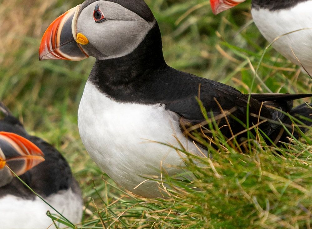 Achetez cette œuvre d'art d'oiseau Macareux moines en Islande par Caroline Pleysier sur toile, aluminium, ArtFrame ou photographie (encadrée), impression d'art en haute qualité et tout format.
