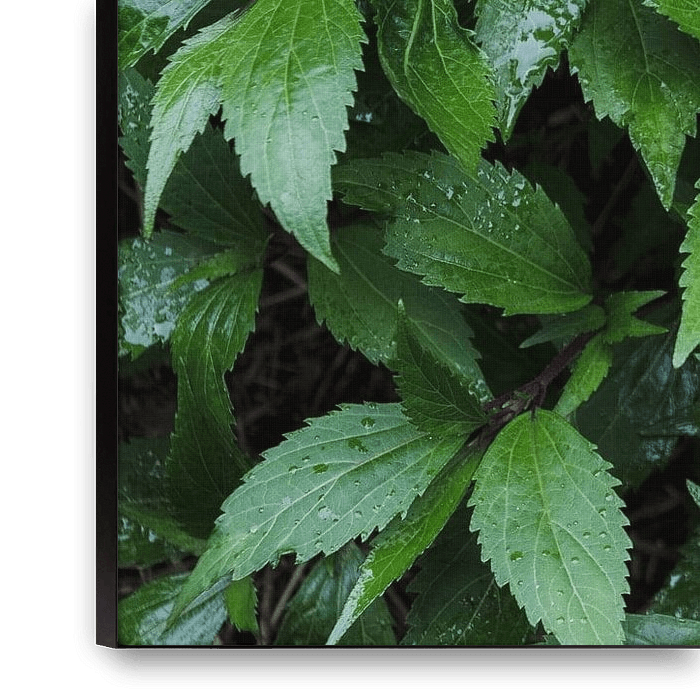 Cette image montre la beauté vivante du monde végétal de La Palma. Des feuilles vertes fraîches sont recouvertes de fines gouttes de pluie qui brillent à la lumière et confèrent au motif une fraîcheur particulière. Les différentes nuances de vert créent de la profondeur et de la vivacité, tandis que les gouttes sont un symbole de…