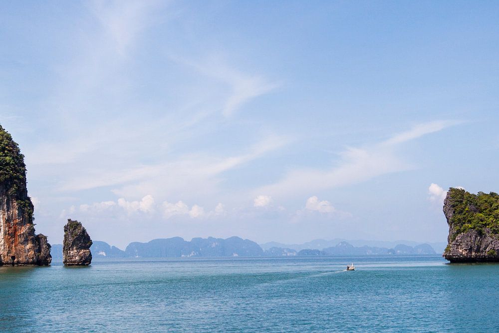 Magnifique eau cristalline et hautes falaises sur une île tropicale. Paysage tropical exotique. Parc national de Phang Nga en Thaïlande