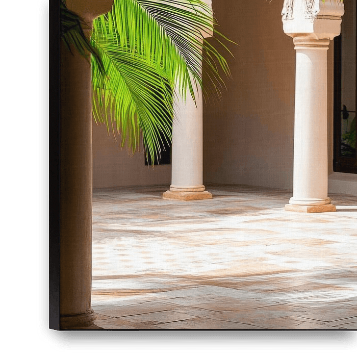 Un jeu d'ombre et de lumière se déploie sous une lanterne suspendue artistiquement conçue. Les douces arches de l'architecture invitent à la détente, tandis que les palmiers luxuriants procurent un sentiment d'exotisme et de calme. Ici, la tradition et la nature s'unissent dans une symbiose harmonieuse qui permet à l'esprit de se…