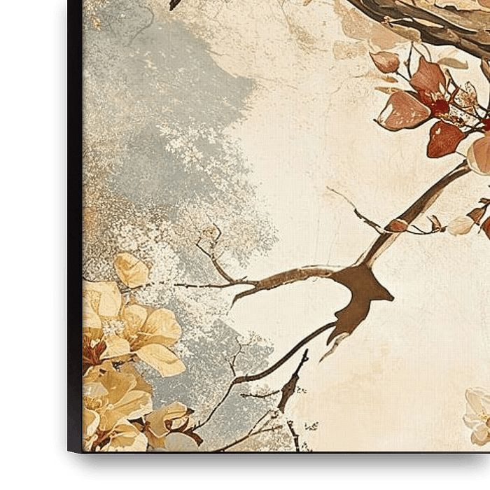 Splendeur du magnolia en fleurs - Interprétation luxuriante de la nature, cette peinture représente la délicate floraison d'une branche de magnolia dans des tons sépia et terre sur un fond doucement atténué, créant un sentiment de beauté tranquille. Cette œuvre d'art dégage une élégance intemporelle, ajoutant une touche de grâce organique aux espaces classiques et contemporains.