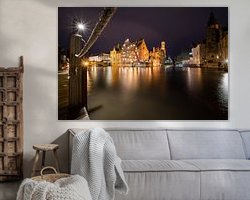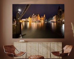 Vue classique du centre historique avec canal de Bruges, province de Flandre occidentale, Belgique. Paysage nocturne de Bruges pendant la période de Noël.