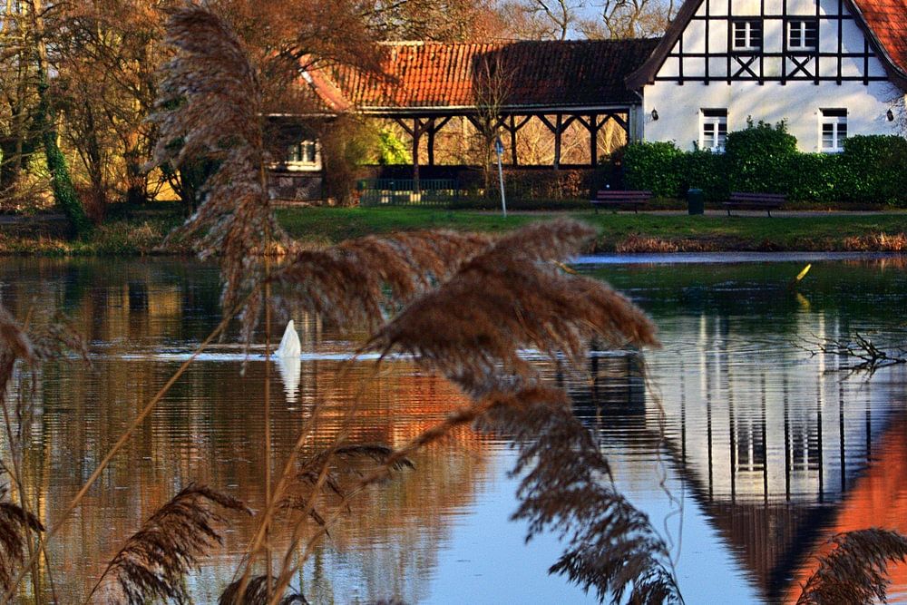 Achetez cette œuvre d'art de paysage Maison à colombages au bord du lac par Edgar Schermaul sur toile, aluminium, ArtFrame ou photographie (encadrée), impression d'art en haute qualité et tout format.