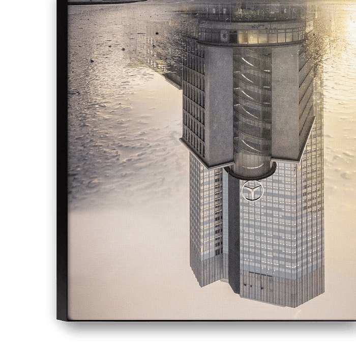 Frankfurt am Main merzedes haus, traversée de rue au coucher du soleil et reflet dans une flaque
