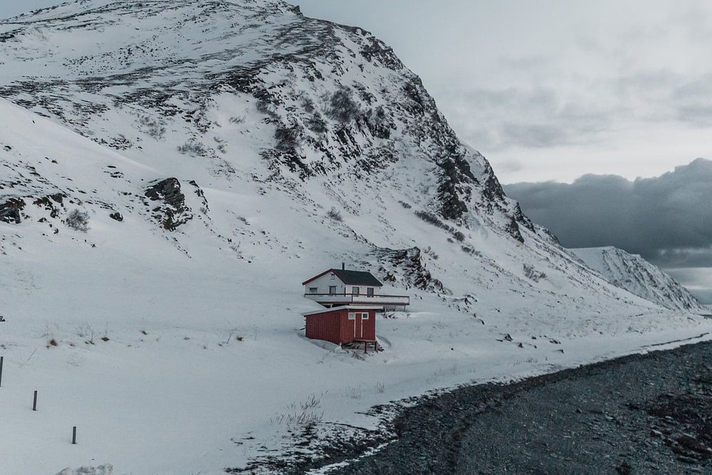 Dans une petite maison dans la nature sauvage près du Cap Nord en Norvège en hiver.