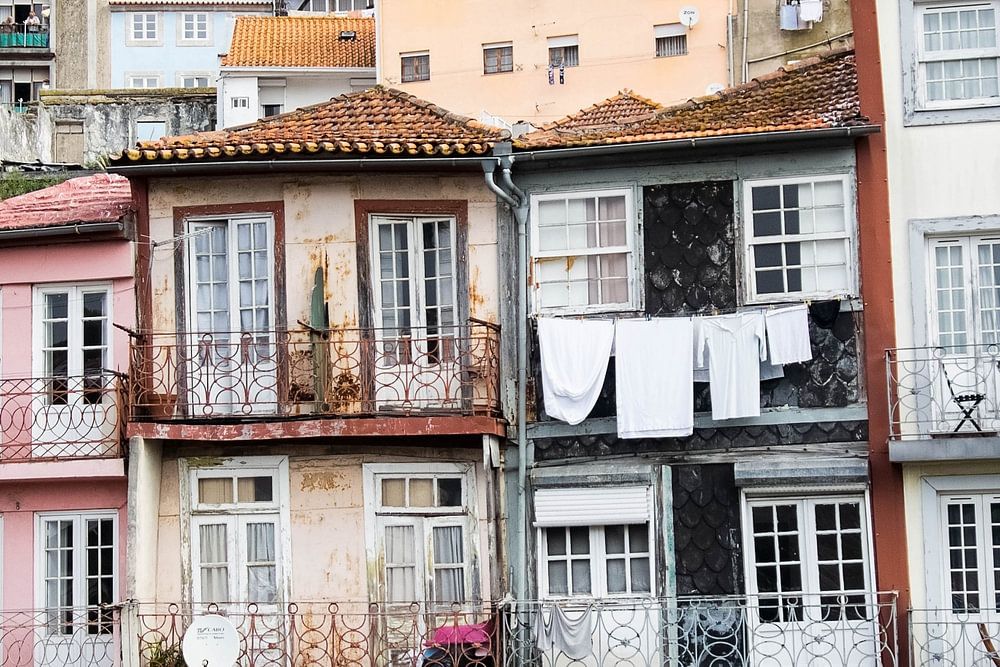 A Porto, vous trouverez de nombreuses façades colorées de maisons, où souvent aussi le linge se trouve à l'extérieur. Un visage heureux !